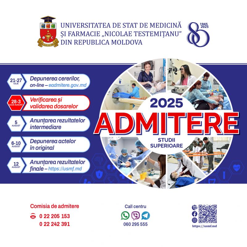 verificarea și validarea dosarelorAstăzi, 28 iulie 2025, s-a încheiat depunerea dosarelor on-line pentru participarea candidaților autohtoni în concursul de admitere la Universitatea de Stat de Medicină și Farmacie „Nicolae Testemițanu” din Republica Moldova.
